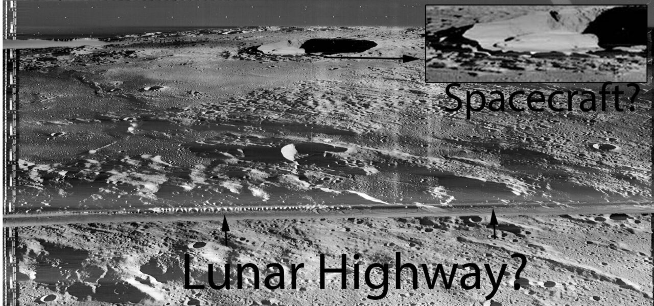 What is perhaps even more solid evidence of something artificial on the moon’s surface in the same Lunar Orbiter photo is what appears to be the remains of a road that is approximately 60 miles (100 km) long on the moon’s surface. The apparent road is surprisingly straight and covers the entire width of the Orbiter photo suggesting it is even longer. This suggests that it is not a natural depression on the lunar surface. Even more surprisingly, the roadway was not discussed in either the Youtube video or the UFO Sightings Daily blogpost.