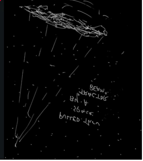 Figure 2. Dick Allgire drawing of 3I/Atlas being dragged by a tractor beam