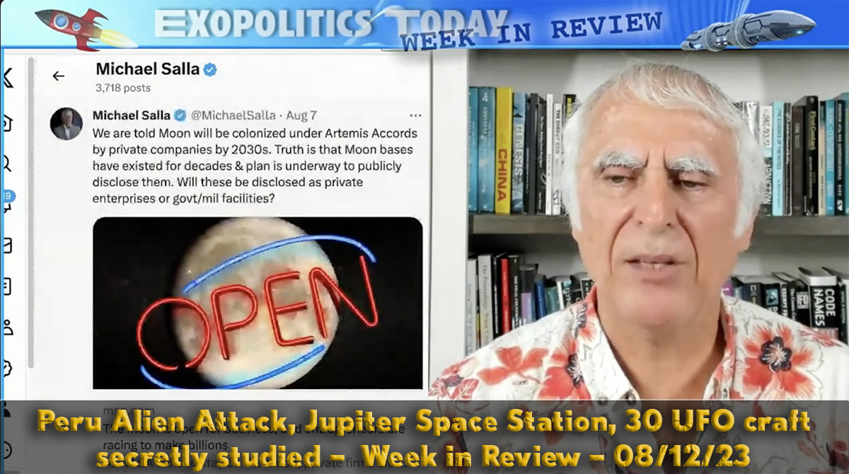 Exopolitics Today the Week in Review examines continued pushback against David Grusch’s UFO testimony; alien attacks in Peru as prelude to false flag attack; UFOs and the Bible; US Space Command and Artemis Accord signatories take control of the solar system; claims that up to 30 extraterrestrial...