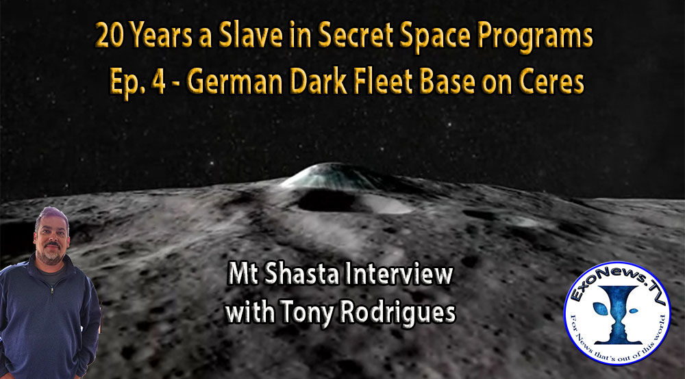 In these additional episodes from an ExoNews TV interview conducted on August 29 at Mt Shasta, California, he discusses his memories of being on a secret corporate base on Mars, and anther base on the Asteroid Belt planetoid Ceres, as well as his service on an alleged Dark Fleet Merchant Spacecraft called the Max Von Laue.