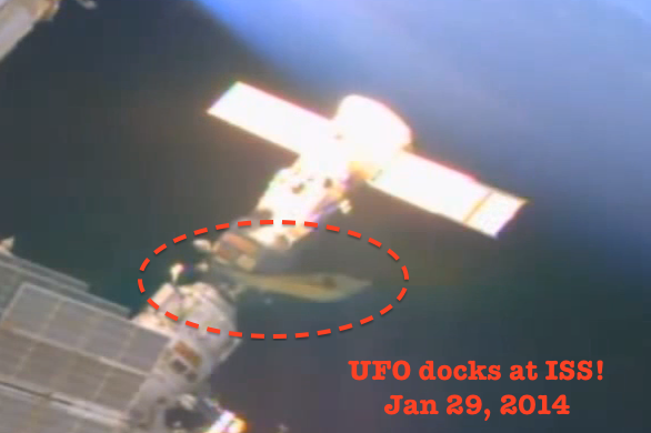 On January 29, 2014 the live camera feed of the International Space Station (ISS) showed what appeared to be a strange yellow elliptical object docked with the hull of the ISS. The live camera feed was quickly recorded and uploaded to Youtube, and is generating much interest as possible evidence of a UFO interacting with the ISS. This has led to claims that the UFO was docked so that extraterrestrials could meet with NASA astronauts. The idea that alien ships could dock with the ISS and have meetings with its occupants is supported by the claims of a former NASA employee who during his 34 year service worked on numerous NASA missions and finally as a Space Craft Operator. He claims to have witnessed a similar alien rendezvous during a U.S. Space Shuttle mission just before his security clearance was revoked by NASA in 1992.