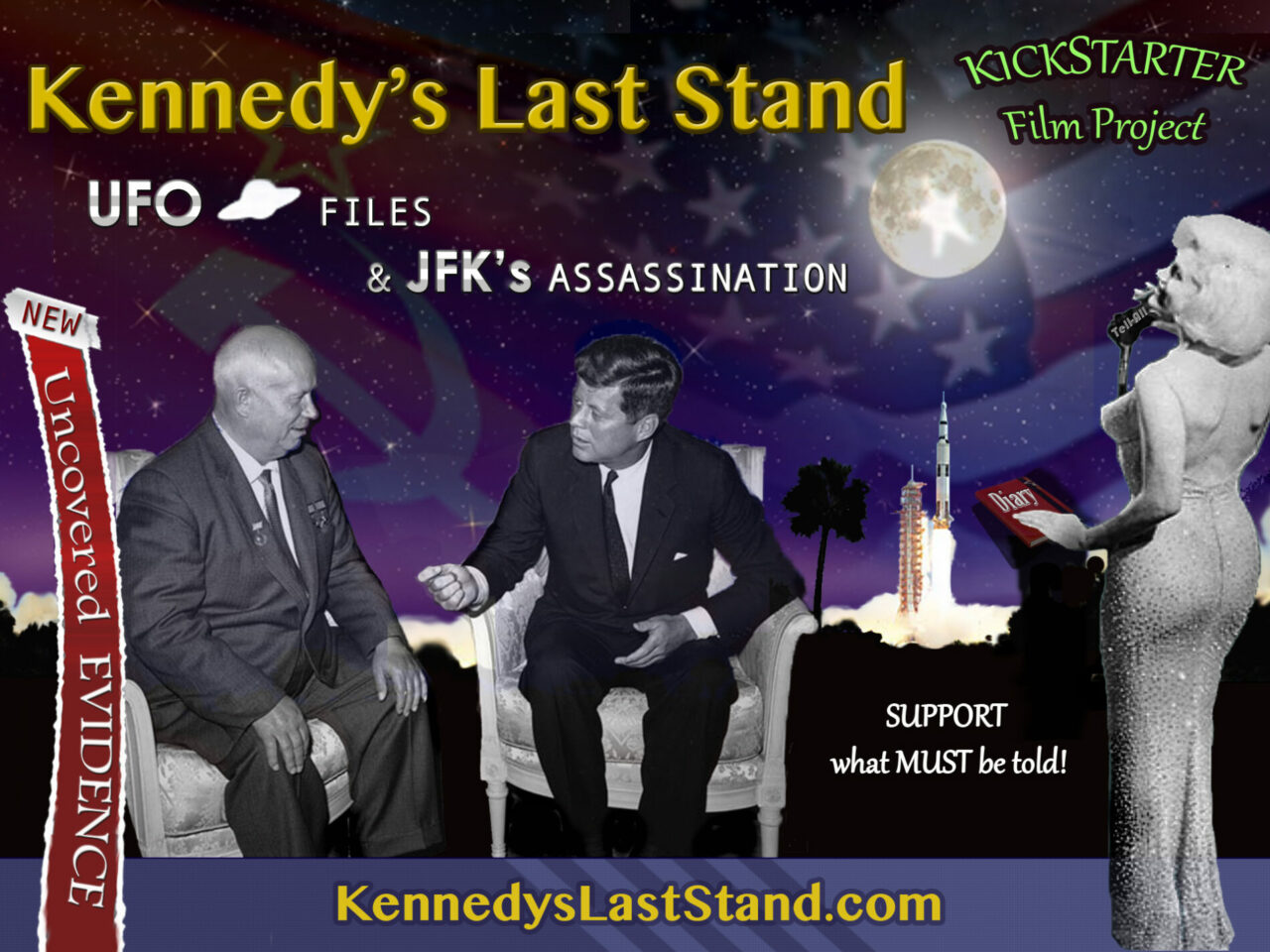 Kennedy’s Last Stand will examine new evidence confirming the relationship between Marilyn Monroe and the Kennedy brothers, and how Monroe learned from Kennedy that he had seen retrieved a UFO craft and extraterrestrial biological entities. Monroe’s threat to give a Tell All Press Conference in Aug 1962 led to her murder in a way that implicated Robert Kennedy, who visited her twice during her final hours to retrieve a red diary with the President’s UFO secrets.