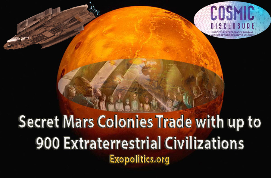 An inspection tour of a secret Mars colony that took place less than two months ago, on June 20, is the focus of episode seven of Gaia TV’s Cosmic Disclosure. Secret space program whistleblower, Corey Goode, had earlier released a detailed report of the incident on June 22. In the Cosmic Disclosure interview with David Wilcock, Goode summarizes key aspects of the tour, as well as giving more details about the alleged trading conducted by a secret space program, the Interplanetary Corporate Conglomerate, with up to 900 extraterrestrial civilizations.