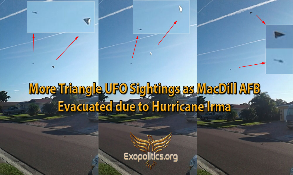 On September 5 and 6, more flying triangle shaped craft were photographed in the vicinity of MacDill Air Force Base in Tampa, Florida, which is the home of US Special Operations Command. The sightings are happening at the same time as Hurricane Irma was heading directly for Florida, among the...