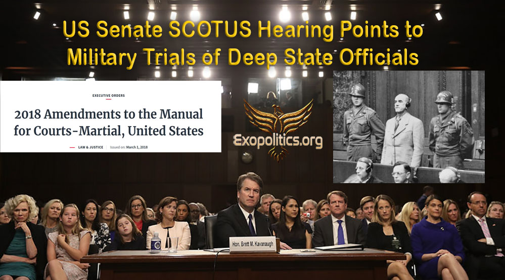 In a US Senate Confirmation hearing held on September 5, Supreme Court nominee Brett Kavanaugh was asked a series of questions that point to future cases involving the legality of military justice being used against U.S citizens. The military intelligence group QAnon has linked the questioning to an Executive Order by President Donald Trump that creates a legal basis for military justice being used against Deep State officials.